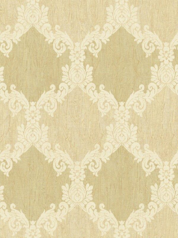 ورق الجدران الأمريكي تيفرتون رقم 70105 ص 24 هو تحفة فنية تجسد التراث الكلاسيكي بألوان ذهبية وسكرية وبيج، ممزوجة بلمعة فضية ولمعة رصاصية لإضافة لمسة من الأناقة إلى أي مساحة. يتميز بتصميم كبير يضفي طابعاً فخماً وأنيقاً على الجدران.